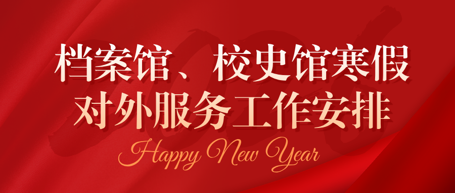 我校2026年寒假时间为1月25日(星期日)至3月5日(星期四),为做好假期各项工作,档案馆、校史馆寒假期间相关服务工作安排如下: