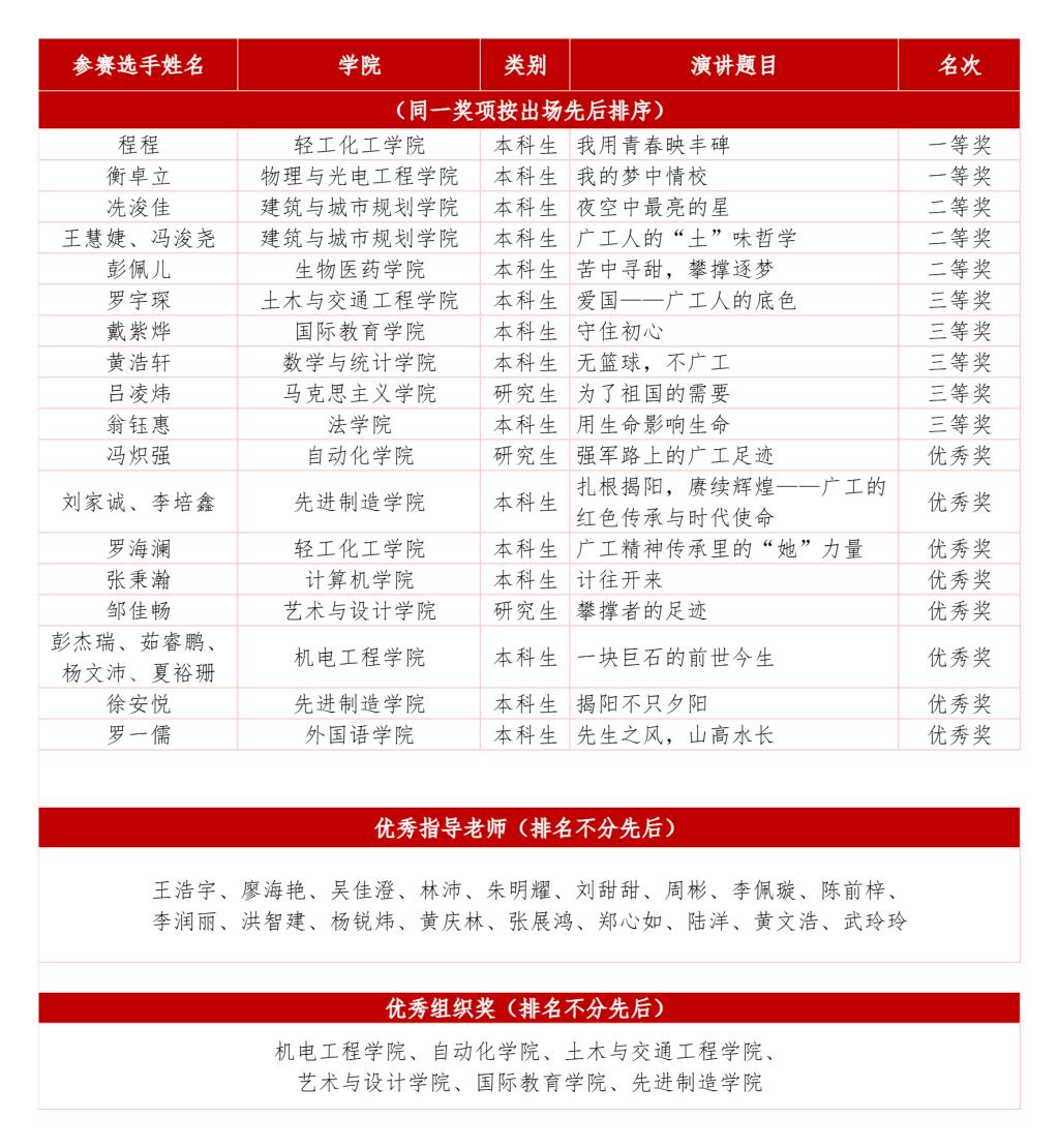 校史演讲比赛的成功举办,不仅是对过去辉煌历史的回顾与致敬,更是对未来的展望与期盼。一代人有一代人使命,一代人有一代人的担当。广工人将铭记校史,传承精神,凝心聚力,埋头苦干,为学校高水平创新型大学建设贡献力量!